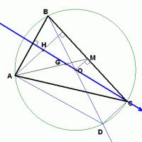 8、 三角形任一顶点到垂心的距离,等于外心到对边的距离的2倍。
