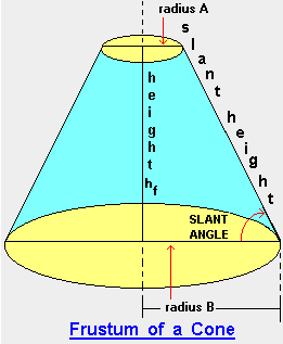 圆锥台体积= (π o 高height o (Ra^2 + Ra o Rb + Rb^2) / 3)